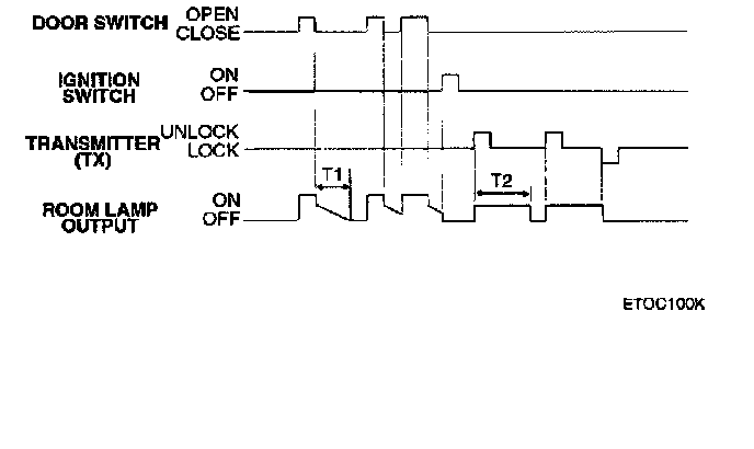 When transmitter (TX) unlock is received, room lamps are turned on in less than 0.5 second for maximum 30 seconds.