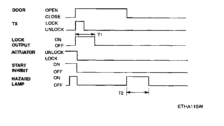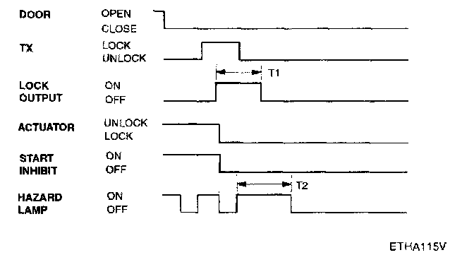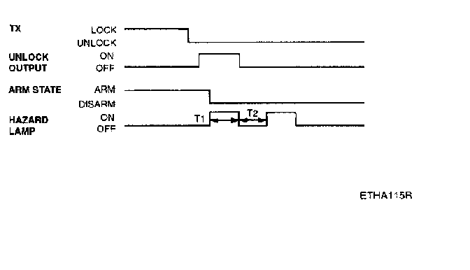 - Pressing the unlock button on the TX key. The hazard lamps shall be flashed twice for 1 sec period (of cycle), 50% duty rate.