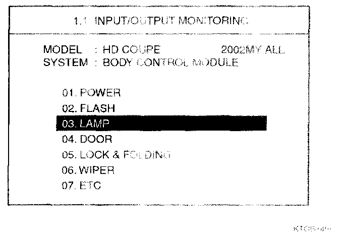 2. Select "03.LAMP" and press [ENTER]. Then, the following screen will be displayed.
