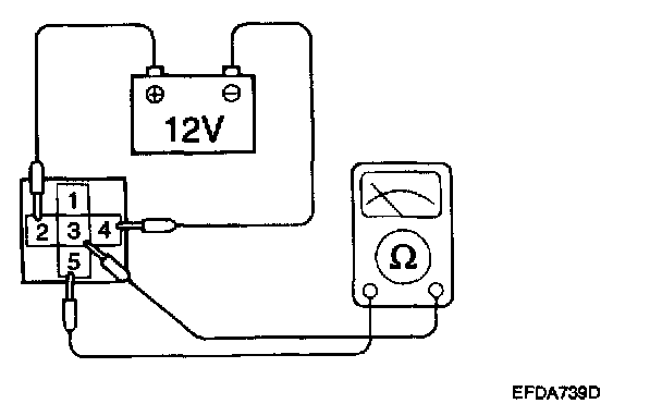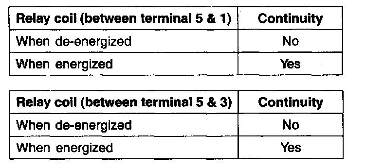 1. Check the continuity of relay contacts between terminals 5 (+) and 1 (-).
