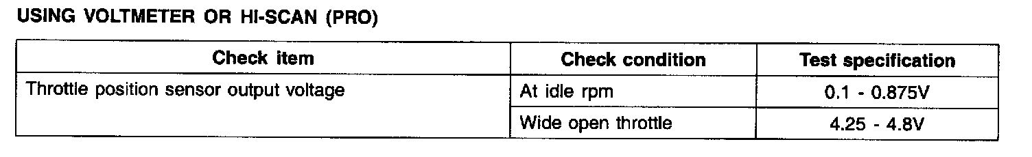 Throttle position sensor: 1.5 - 2.5 Nm (15 - 25 kg.cm, 1.1 - 1.8 lb.ft)