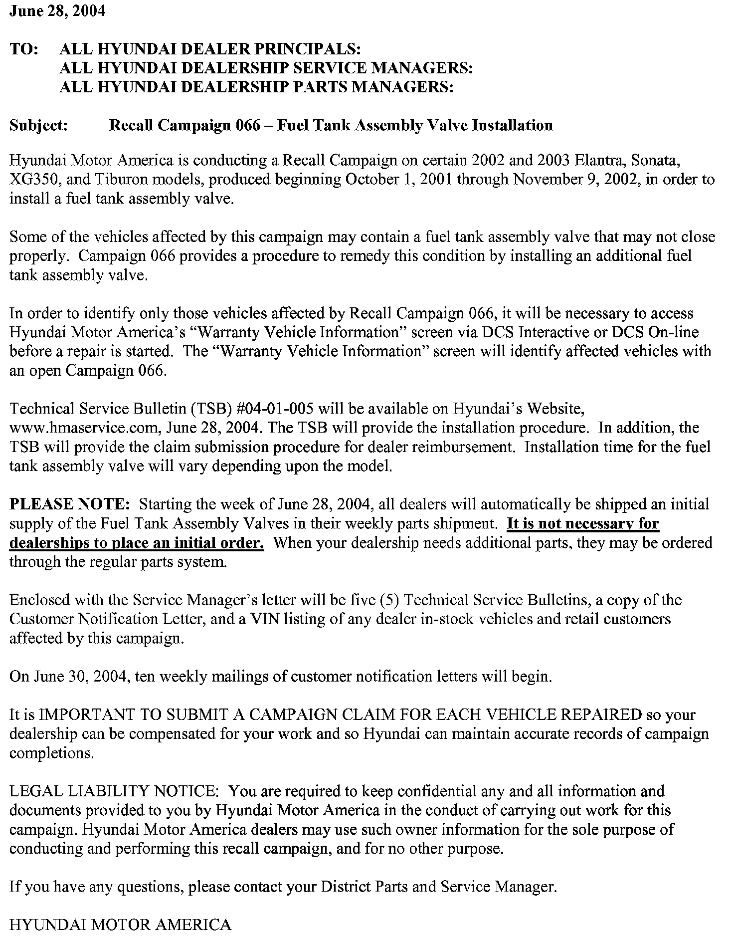Recall - Fuel Tank Valve Replacement