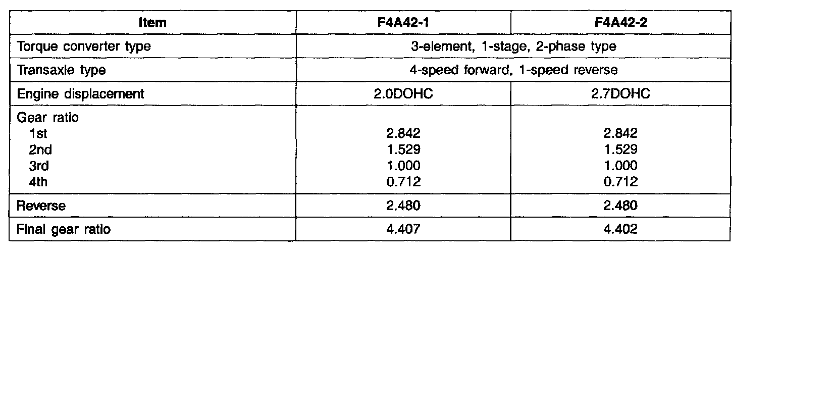SPECIFICATIONS (A/T)