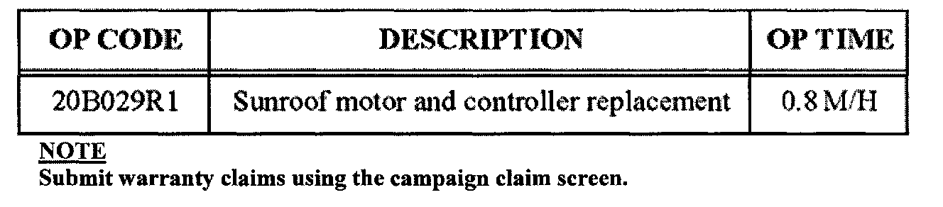 Campaign - Sunroof Motor/Controller Replacement: Overview