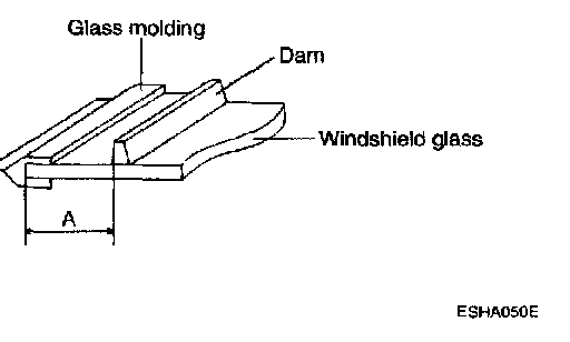 6. Glue the rubber dam to the inside surface of the windshield glass around the entire edge as shown, to contain the sealant during installation.