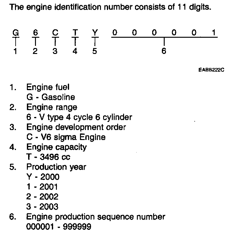 The Engine identification number is stamped on the right front side of the top edge of the cylinder block.