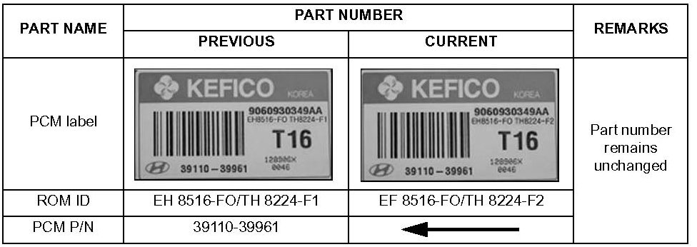 ^ The PCM part number did not change.