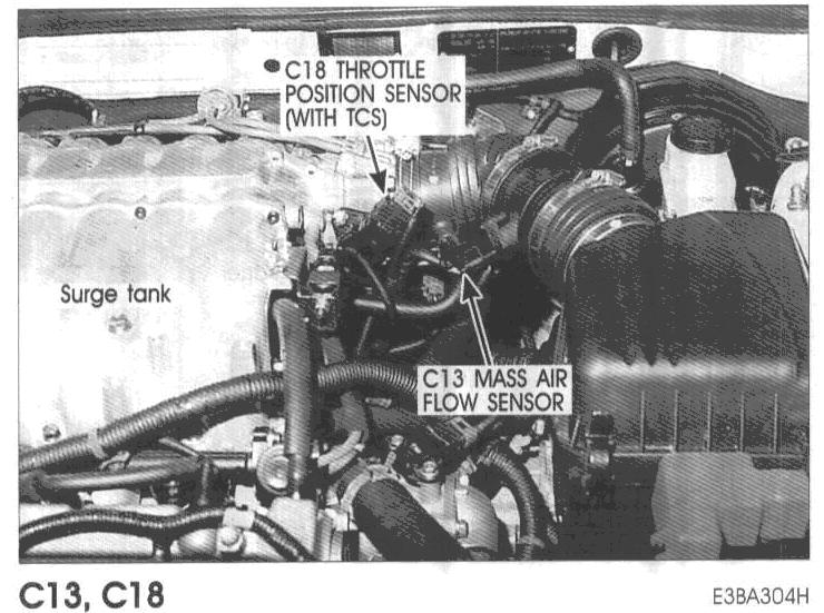 C13 Mass Air Flow Sensor, C18 Throttle Position Sensor (With TCS):