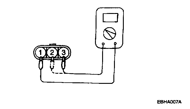 Connect the negative (-) terminal of a 3 V power supply to terminal 2 of the power transistor; then check whether there is continuity between terminal 3 and terminal 2 when terminal 1 and the positive (+) terminal are connected and disconnected.