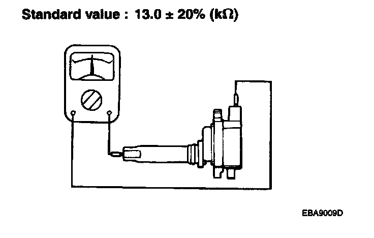 Measure the resistance between the high-voltage terminals of the ignition coil.