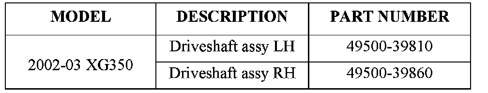 ^ 2002-03 MY XG350 vehicles produced prior to February 17, 2003