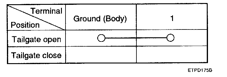 3. Check for continuity between the terminal and ground according to the table.