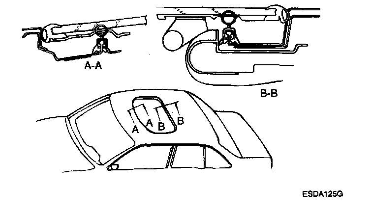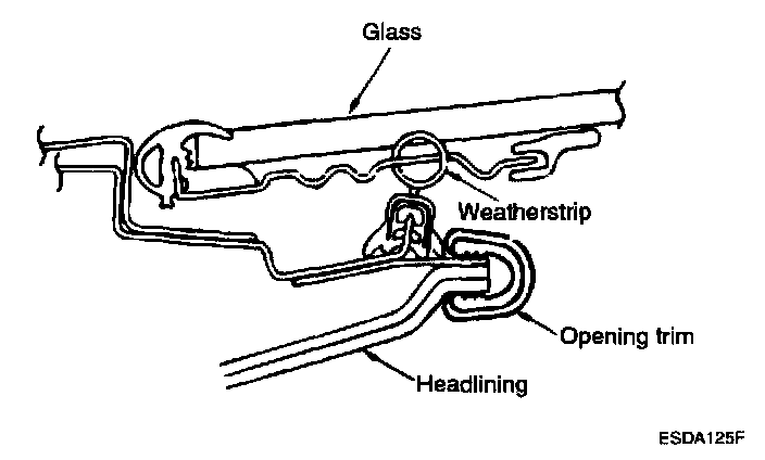 8. When installing the sunroof opening trim, make sure that there is no gap between the trim and the headlining.