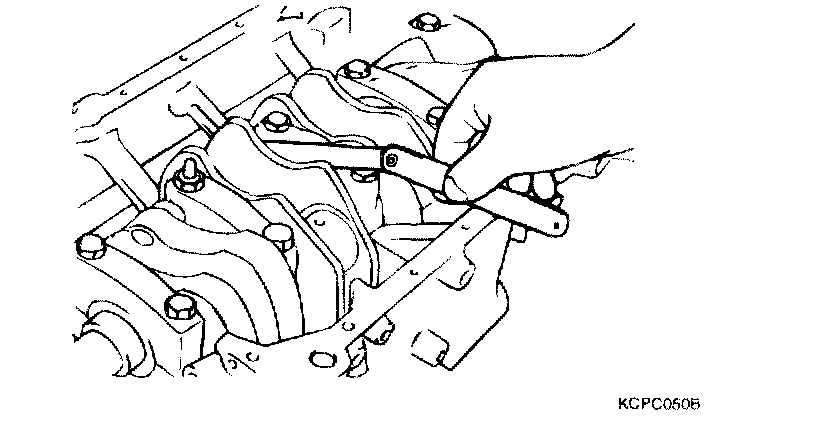 CAUTION: Mark the main bearing caps to permit reassembly in the original position and direction.