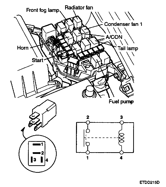 2. There should be continuity between the No.1 and No.4 terminals when power is disconnected.