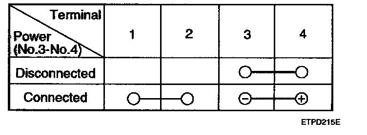 2. There should be no continuity between the No.3 and No.4 terminals when power is disconnected.