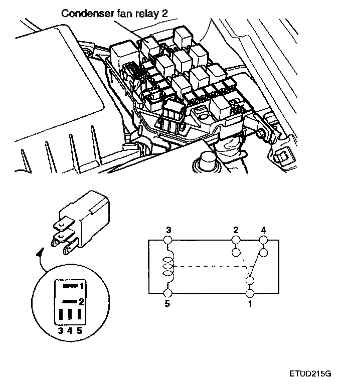 1. There should be continuity between the No.1 and No.2 terminals when power and ground are connected to the No.3 and No.5 terminals.