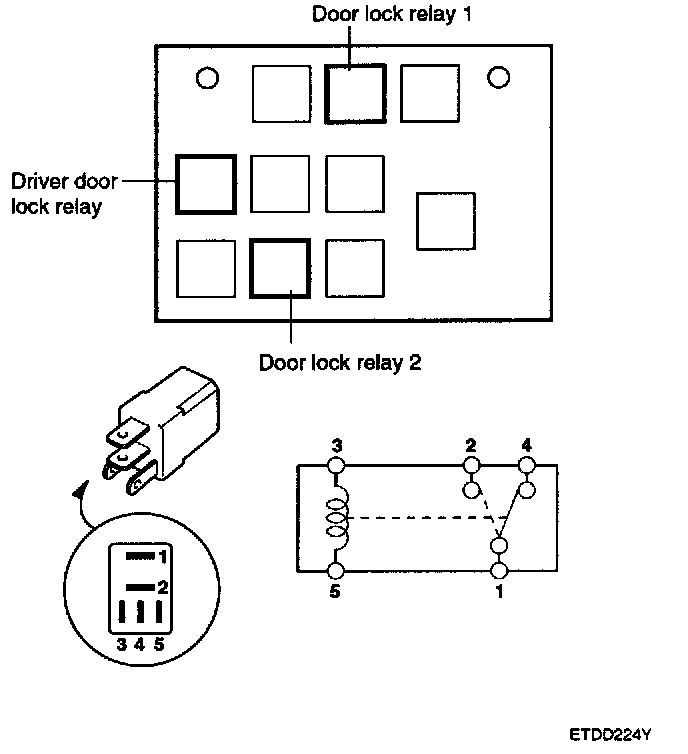 1. There should be continuity between the No.1 and No.2 terminals when power and ground are connected to the No.3 and No.5 terminals.
