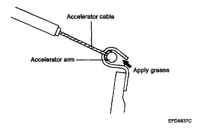 1. When installing the return spring and accelerator arm, apply multi-purpose grease around each moving point of the accelerator arm.