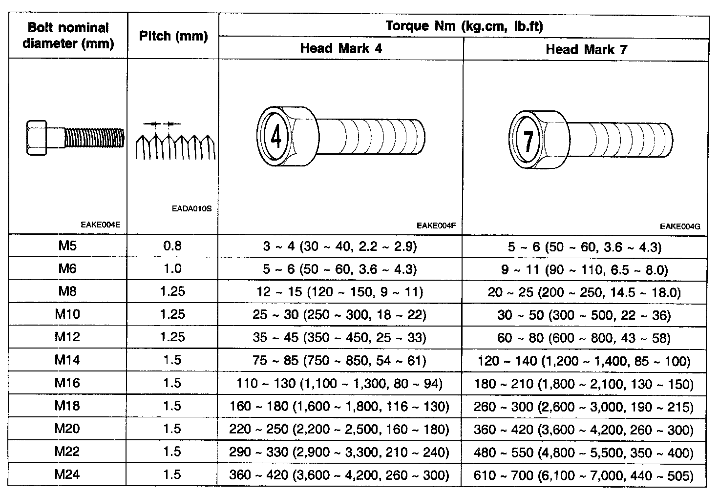 2. The torques shown in the table are not applicable