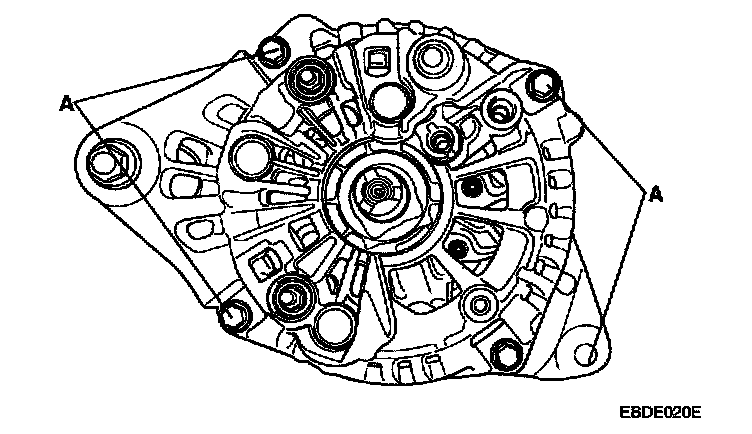 5. Loosen the 4 through bolts(A).