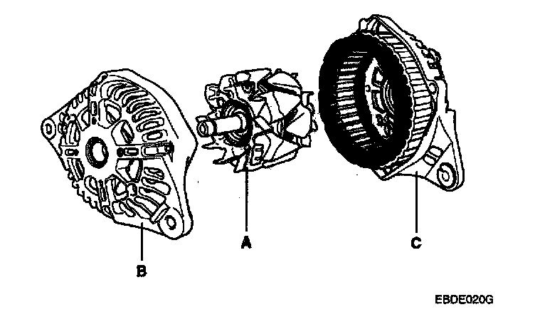 6. Disconnect the rotor(A), front cover(B), and rear cover(C).