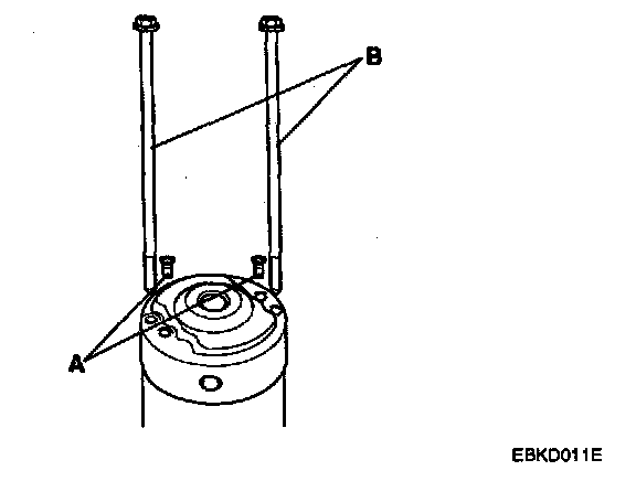 3. Loosen the brush holder mounting screws(A) and through bolts(B).