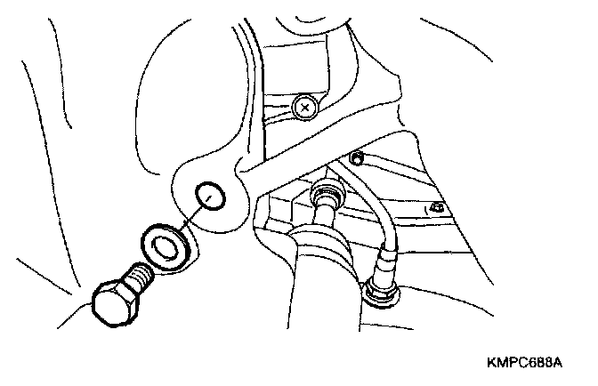 21. Remove the transaxle mounting bracket after removing the hole cover and the mounting bolts.