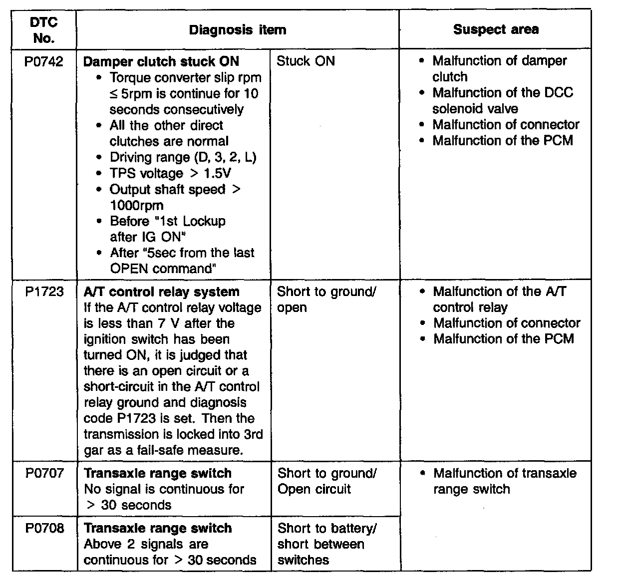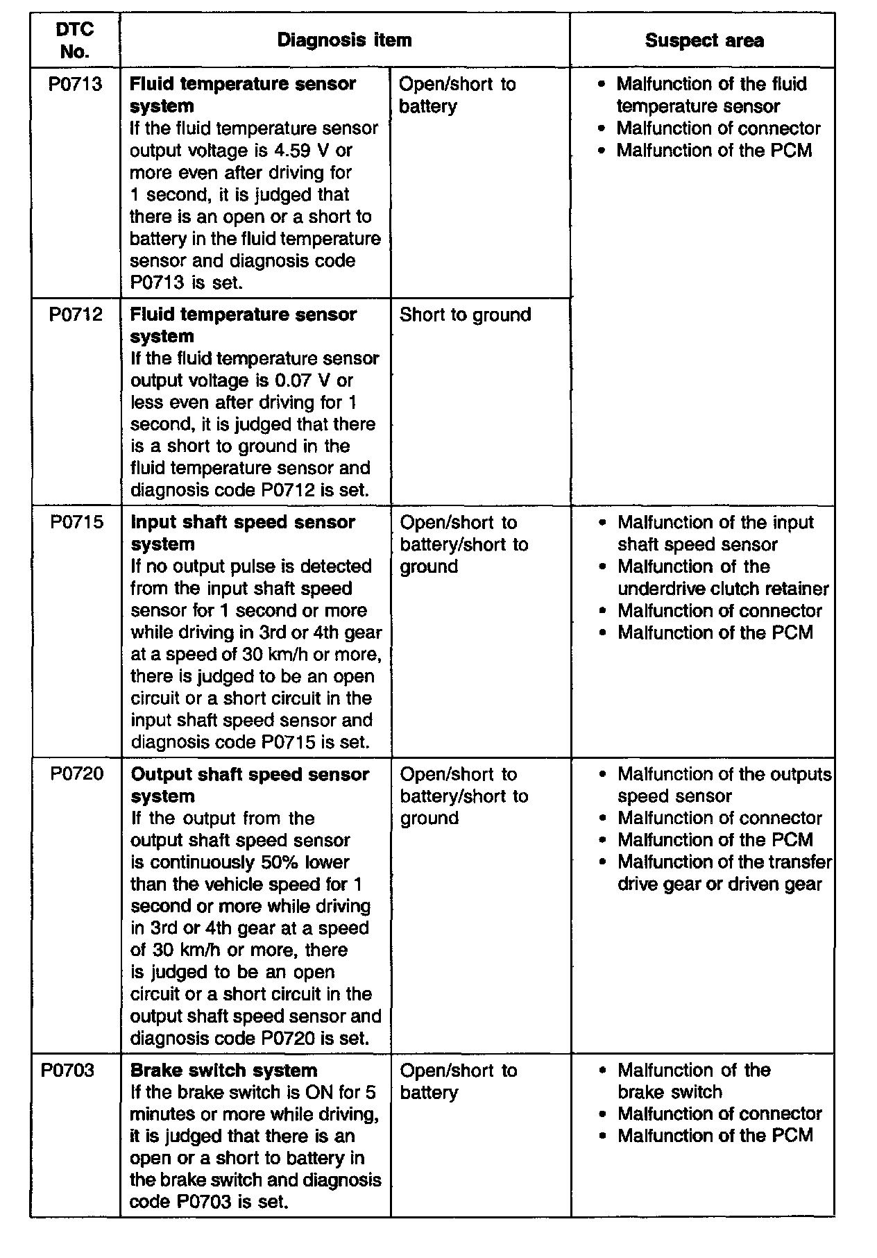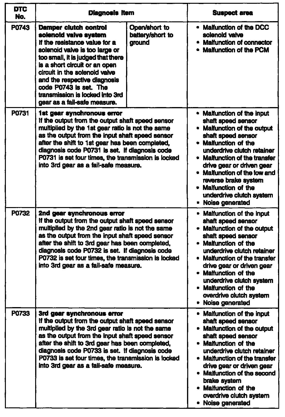 Diagnostic Trouble Code Descriptions