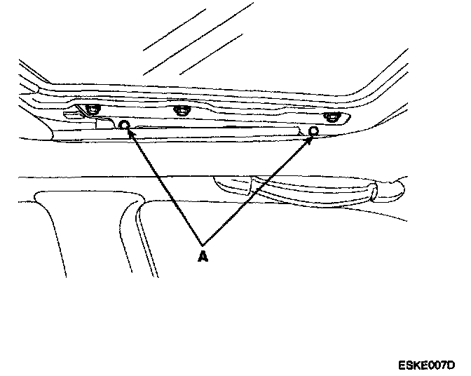 4. The roof panel (A) should be even with the glass (B) weatherstrip (C), to within the standard value "E" all the way around. If not, make the following adjustment.