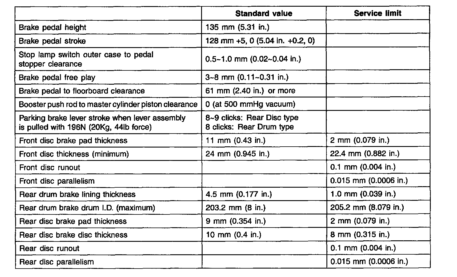 Brakes and Traction Control: Specifications