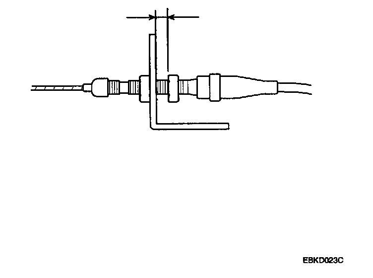 5. Turn the adjusting nut (A) until it is 3.7 ± 0.5 mm (0.15 ± 0.02 in.) away from the bracket (B).