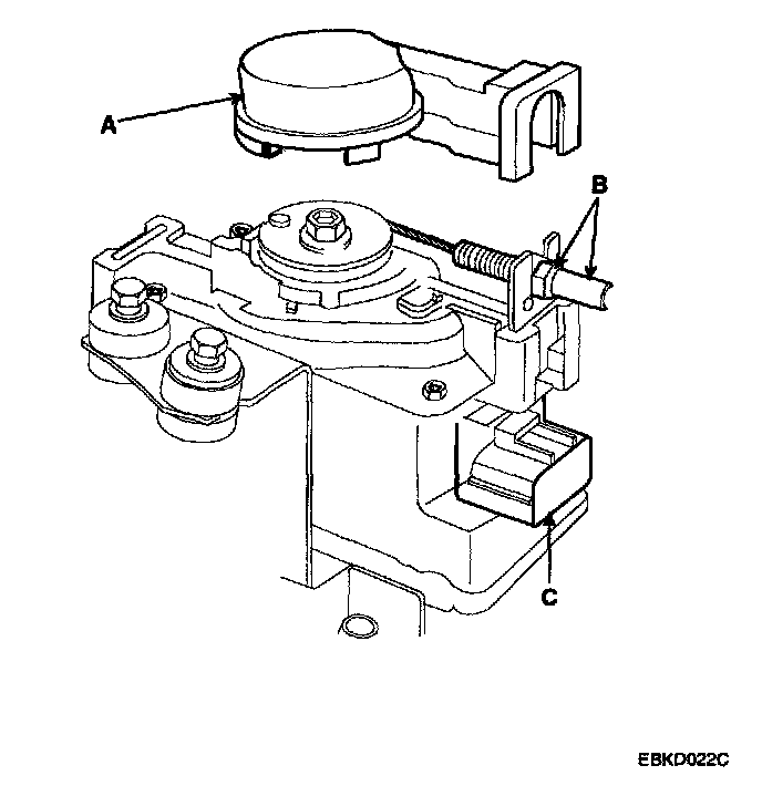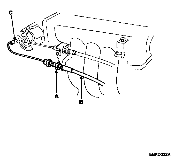 CRUISE CONTROL UNIT AND CABLE1. Loosen the locknuts (A) and disconnect the actuator cable (B) from the throttle linkage (C).