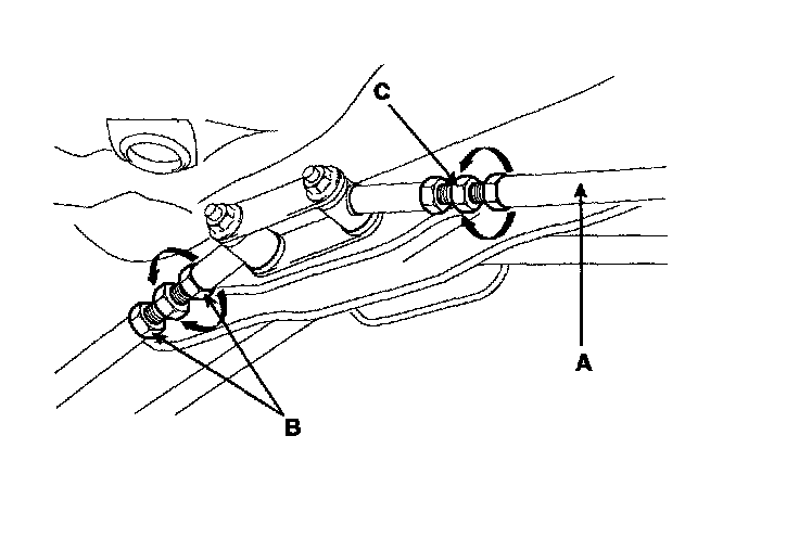 2. After adjusting the tie rod(c), tighten both nuts(B) to the specified torque.