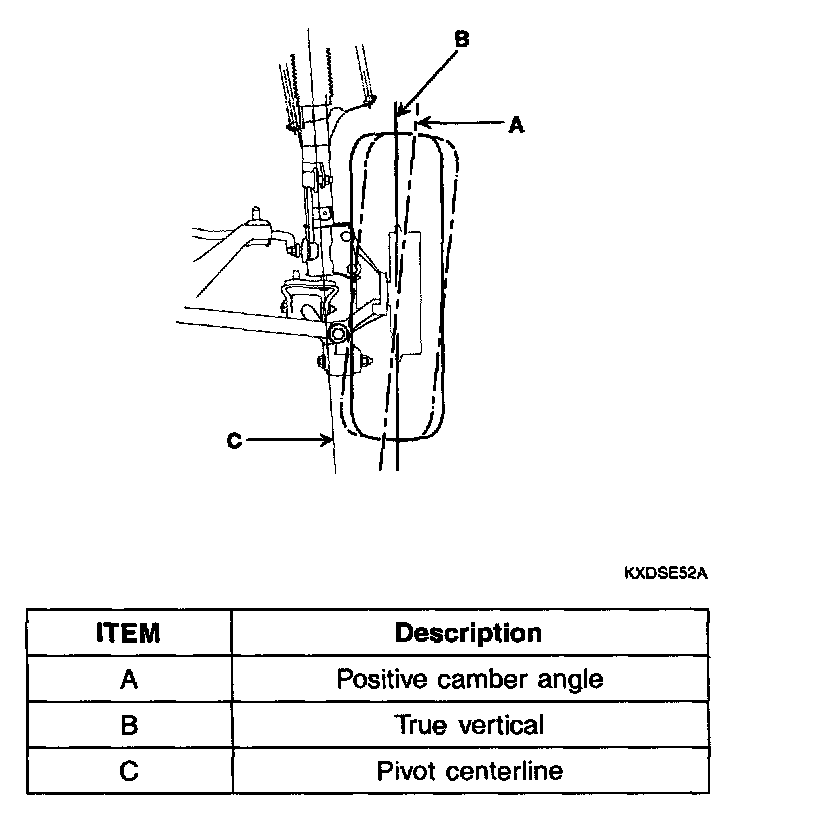 NOTE: Camber is pre-set at the factory and doesn't need to be adjusted. If the camber is not within the standard value, replace the bent or damaged parts.