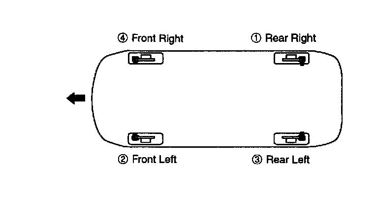 4. Repeat the procedure for each wheel in the sequence shown until air bubbles no longer appear in the fluid.