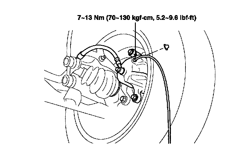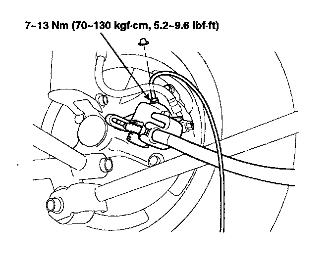 3. Loosen the right-rear brake bleed screw to allow air to escape from the system. Then tighten the bleed screw securely.