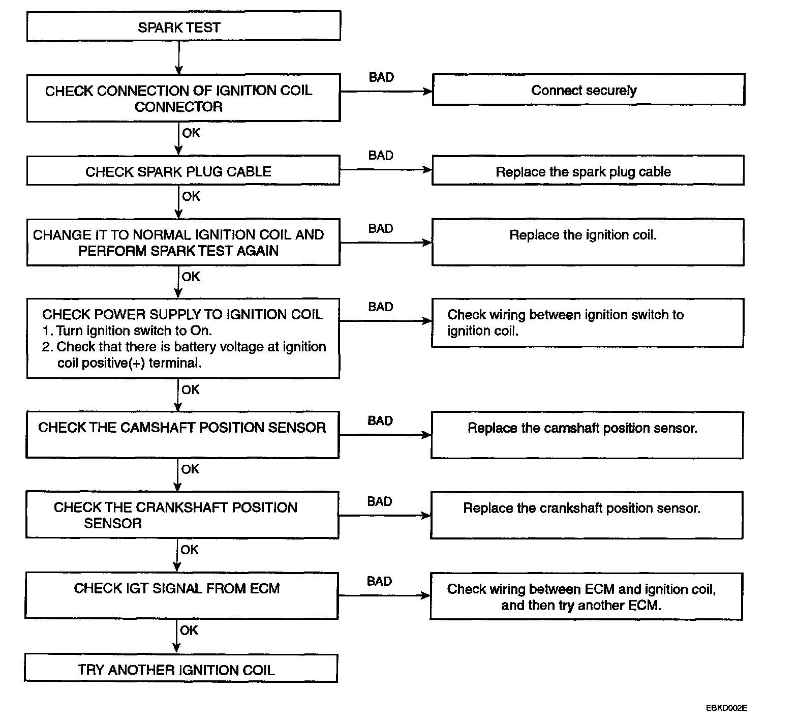 5. Check if spark occurs while engine is being cranked.