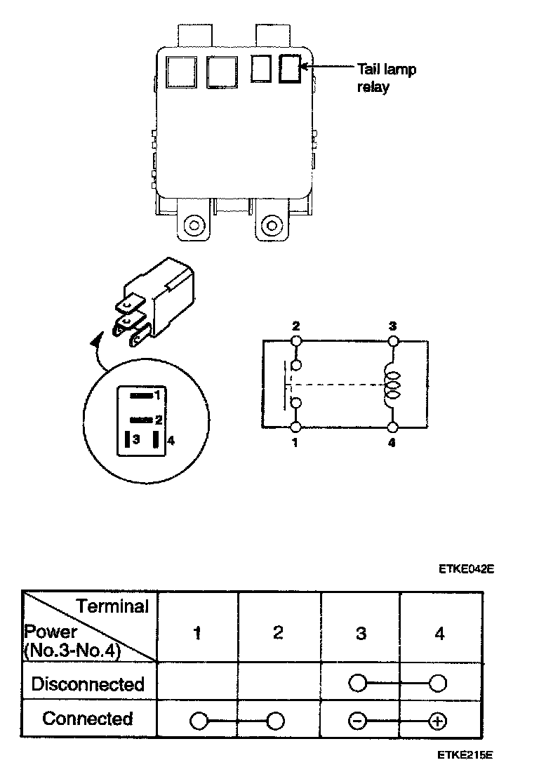 1. There should be continuity between the No.1 and No.2 terminals when power and ground are connected to the No.4 and No.3 terminals.