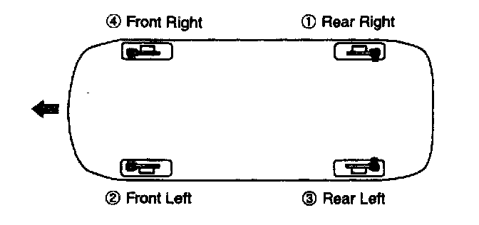 4. Repeat the procedure for each wheel in the sequence shown until air bubbles no longer appear in the fluid.