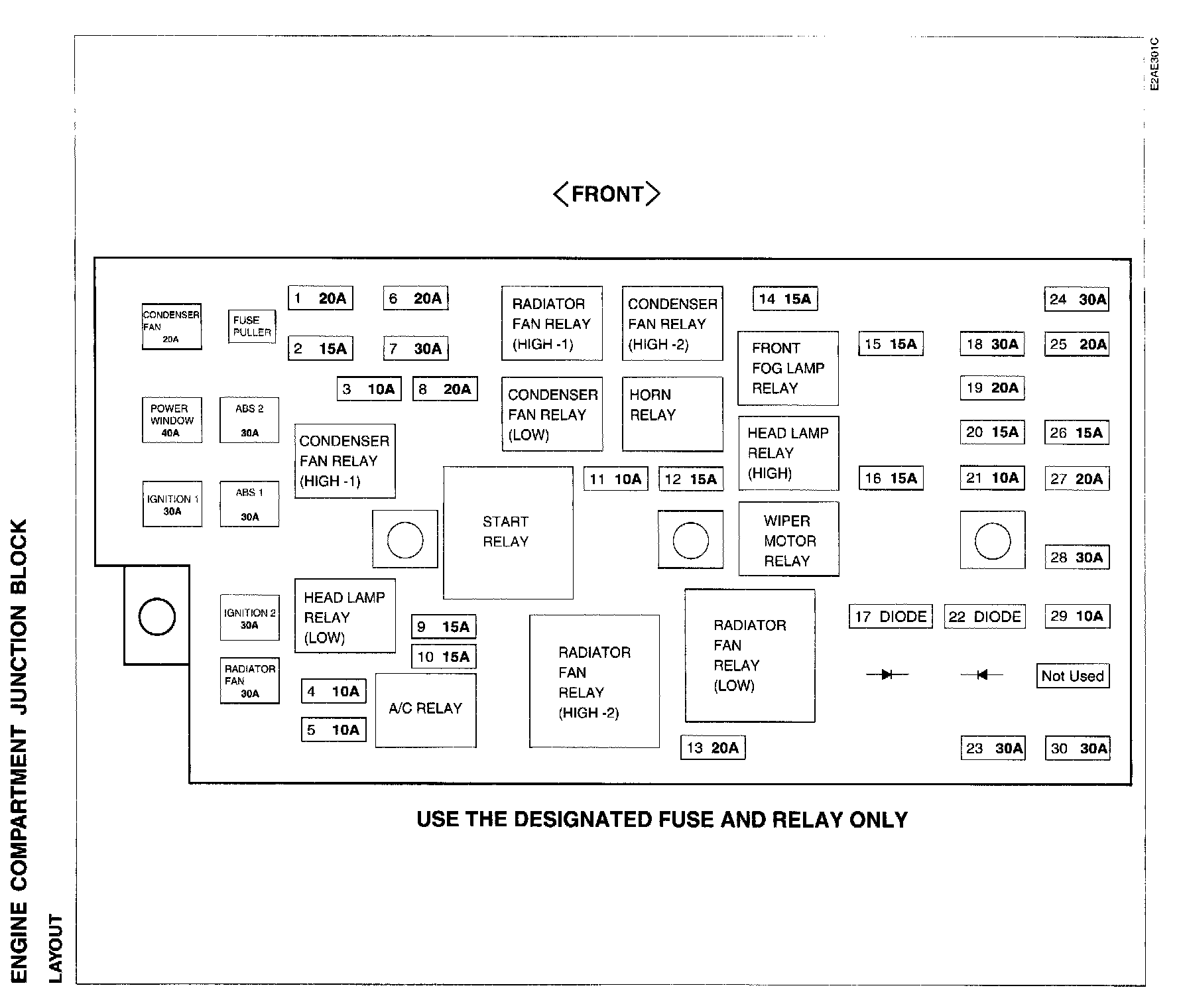 Engine Compartment Junction Block Layout: