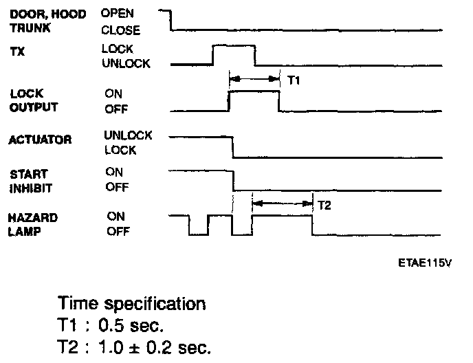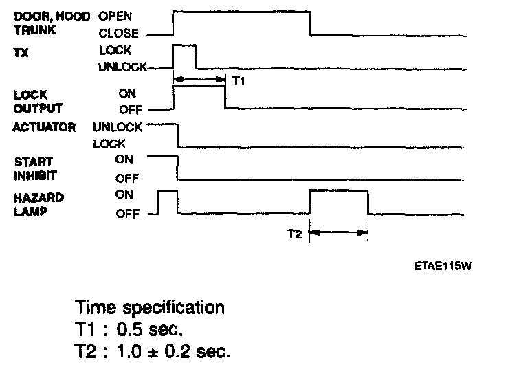 If transmitter(TX) lock signal is received when a door, trunk or hood is open,then lock output is given and a flash of hazard is not given.
