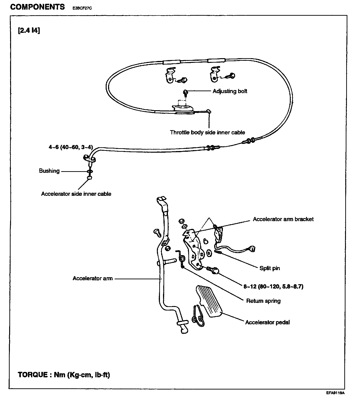 Accelerator arm bracket bolts : 8-12 Nm(80-120 kg.cm, 6-7 lb.ft)