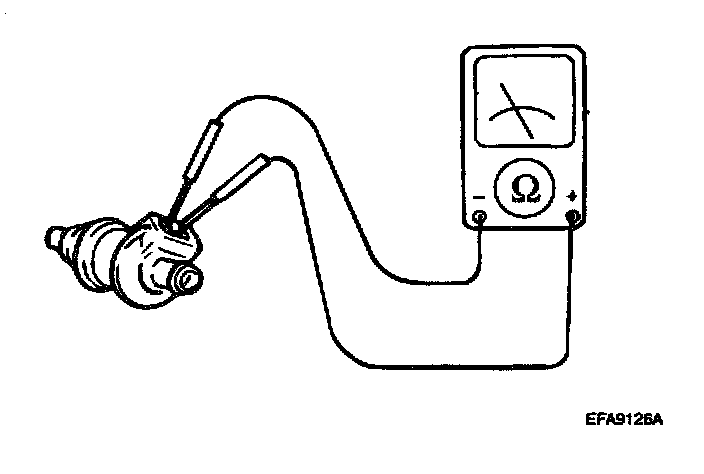 7. Measure the resistance of the injectors between the terminals using an ohmmeter.