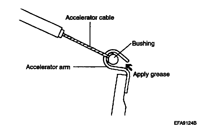 1. When installing the return spring and accelerator arm, apply multi-purpose grease around each moving point of the accelerator arm.