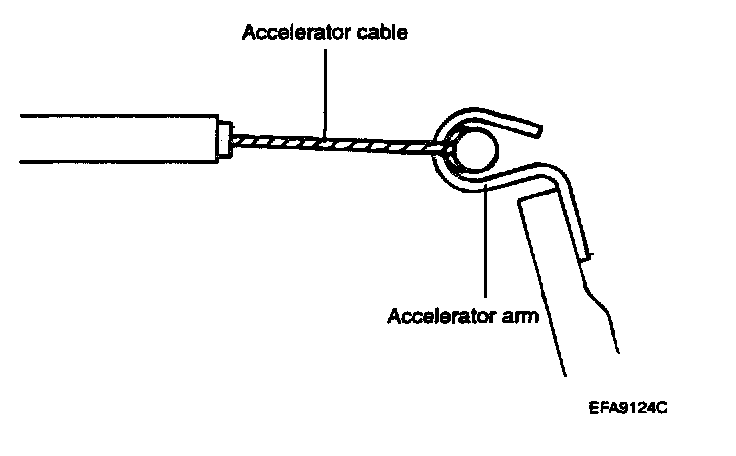 3. Securely install the resin bushing of the accelerator cable on the end of the accelerator arm.