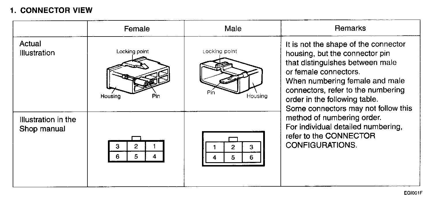 UNLESS OTHERWISE STATED, ALL CONNECTOR VIEWS ARE FROM THE TERMINAL SIDE OF THE CONNECTOR.