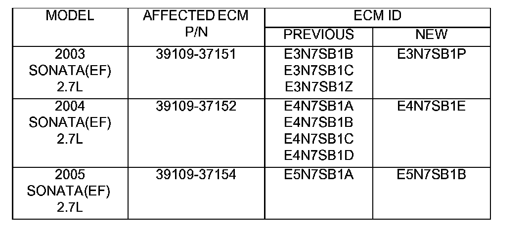 ^ Model : 2003-2005 SONATA (EF) 2.7L vehicles