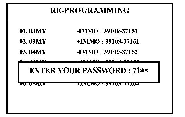6. Select and enter the password for the manual update mode which is correct for the vehicle specification by referring to the chart below.