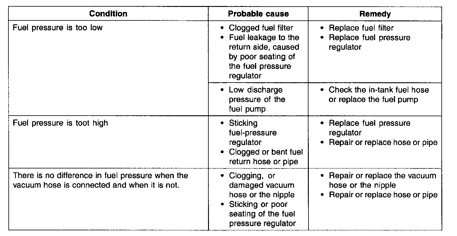 7. Disconnect the vacuum hose from the pressure regulator, and plug the end of the hose. Measure the fuel pressure at idle.